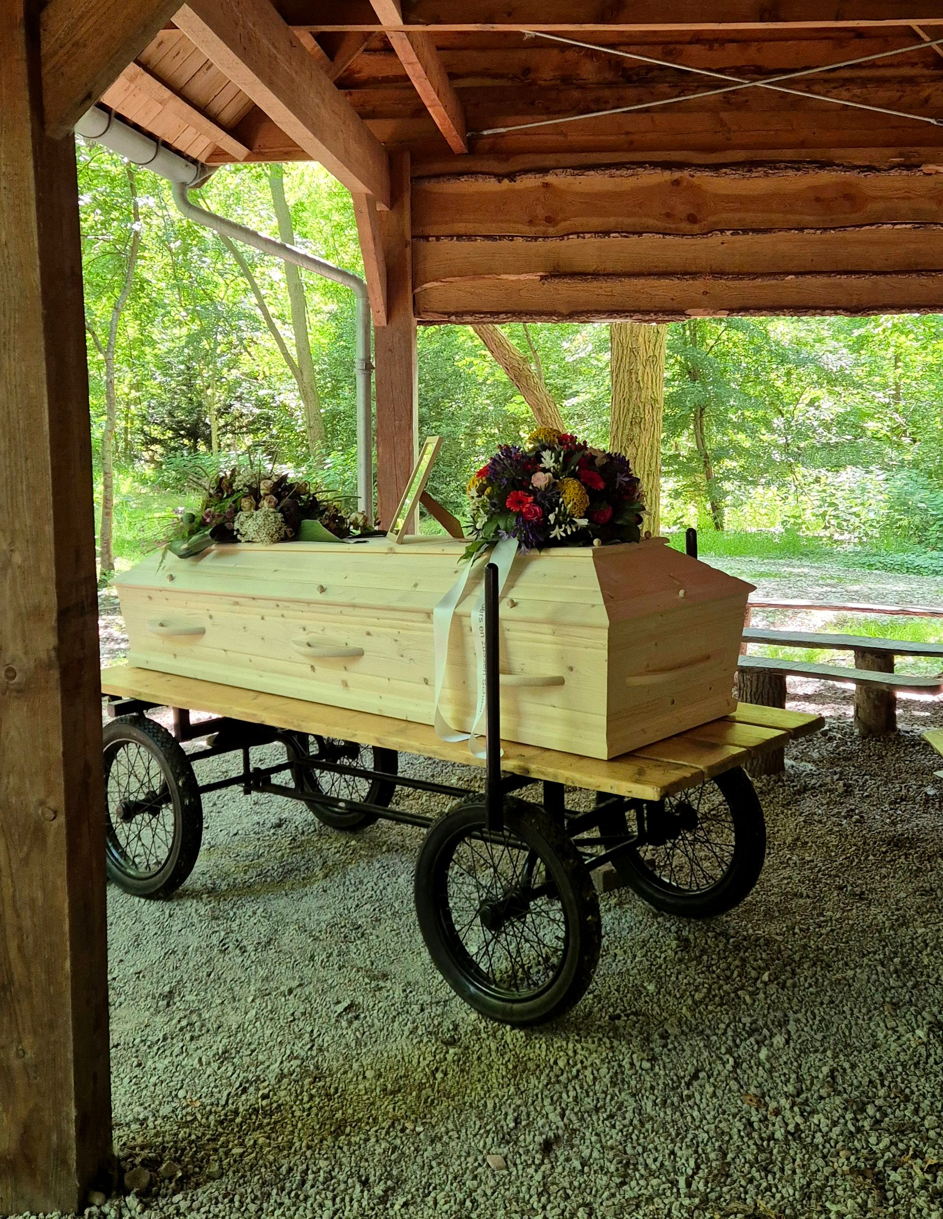 Misschien wil je het leven vieren met een biertje en borrelhapjes in de sportkantine, een samenzijn in het café of restaurant waar iemand zo graag kwam, of gewoon bij je thuis, in de stal of in de tuin. Of sluit een laatste rit in eigen auto, camper, praam of tractor beter aan bij hem of haar? Of wil je een kist in je lievelingskleur, een mand, een opbaarplank met wade of misschien wel een biologisch afbreekbare 'paddenstoelenkist' (zie foto)? Het is helemaal aan jou. Liever een begrafenis of crematie op de vertrouwde manier? Ook dat regelen we natuurlijk graag voor je. Jij bepaalt de koers, wij zorgen dat het afscheid helemaal klopt bij wie hij of zij was.